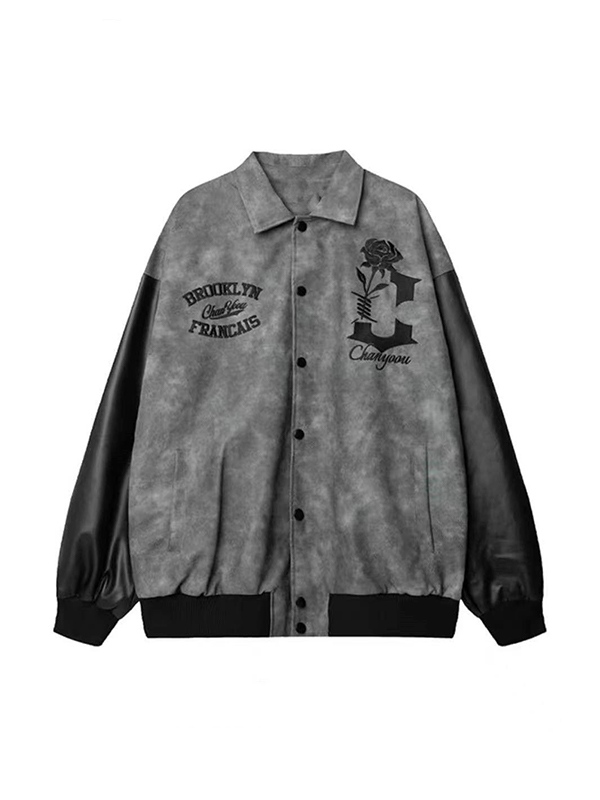Men’s Tie Dye Embroidery Leather Splice Jacket