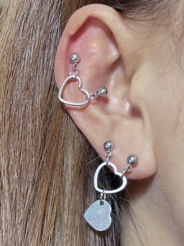 1pc Silver Heart Charm Earrings