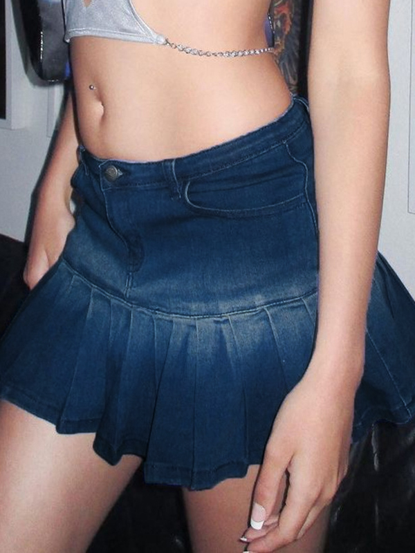 Vintage Pleated Ultra Short Denim Mini Skirt