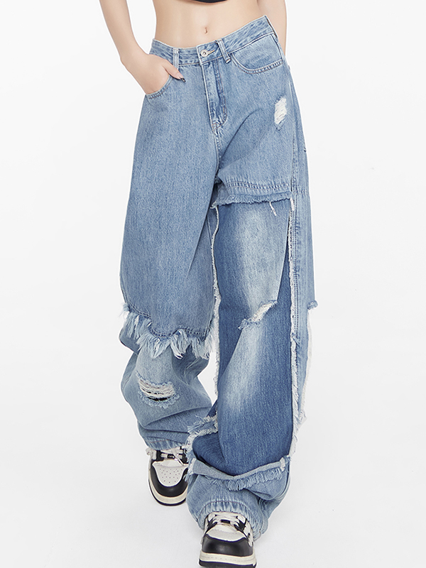 Niche slimming straight wide legs Ripped Jeans