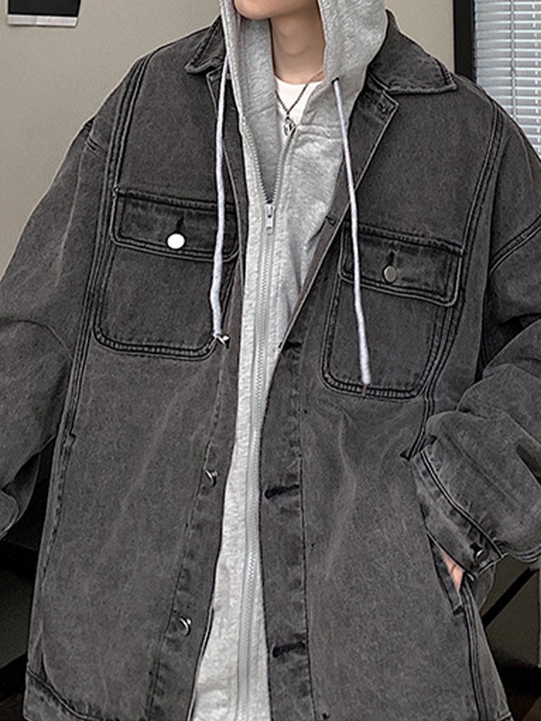 Men’s Denim Fake Two Piece Oversized Hoodie