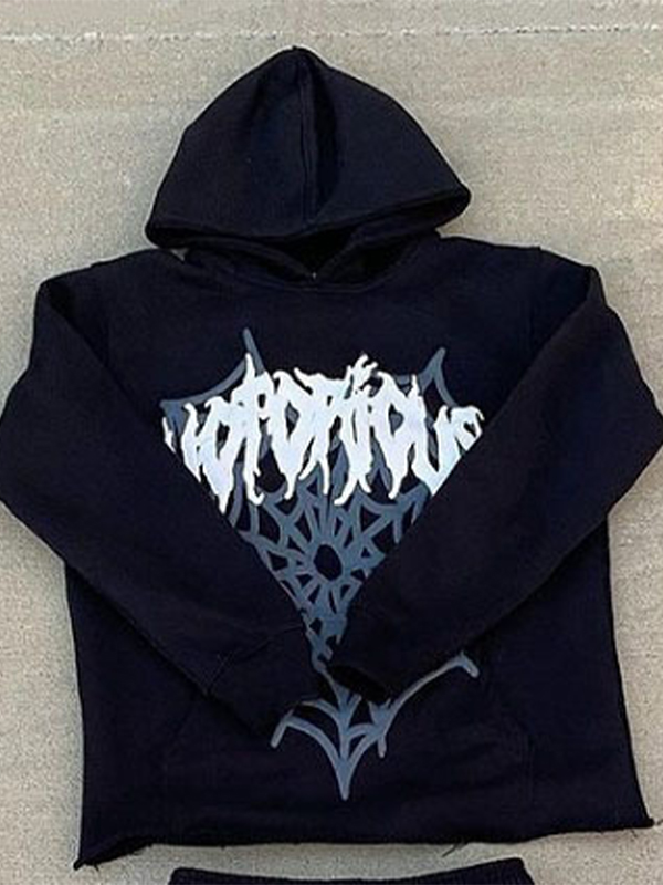 Gothic Print Zip Up Cropped Oversized Hoodie