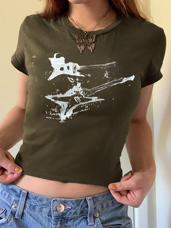 Cat Print Drawstring Oversized Short Sleeve Tee