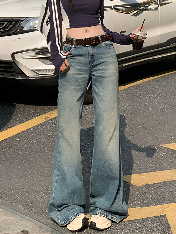 Spider Print Vintage Blue Wide Leg Boyfriend Jeans