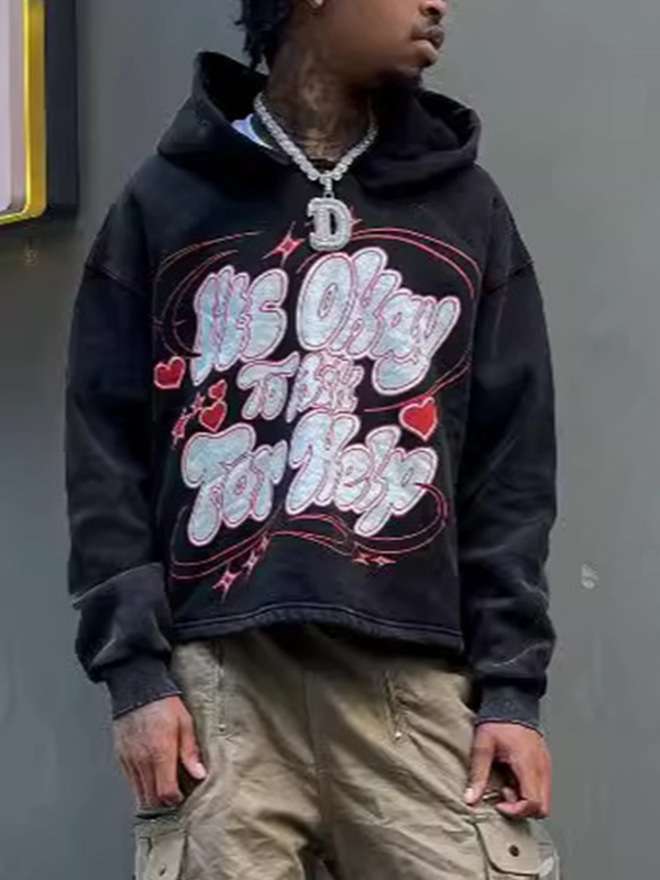 Men’s Loose Letter Print Oversized Long Sleeve Hoodie