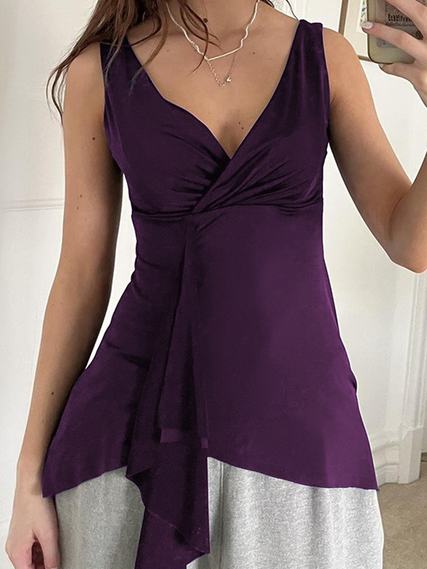 Purple Crossover V-Neck Tank Top