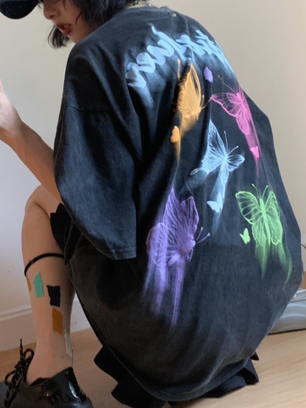 Vintage Graffiti Butterfly Oversized Short Sleeve Tee