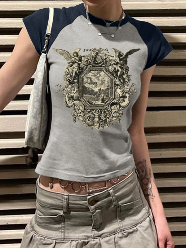 Raglan Sleeves Printed Short Sleeve Tee