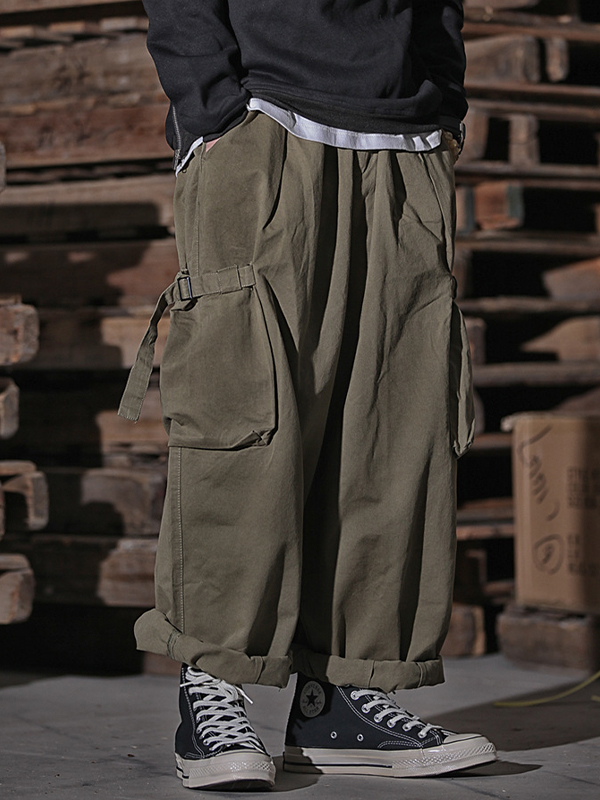 Men’s Buckle Belt Loose Cago Pants