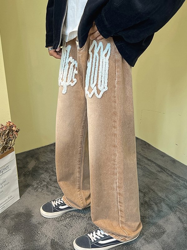 Description: It has fuzzy letter motif on the front leg, features multi pockets design, and with a metal zip button detailing.