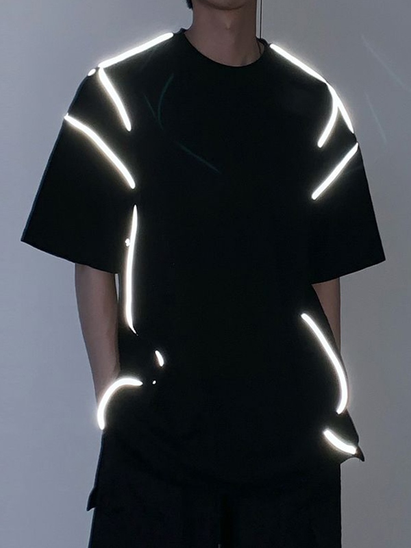 Men’s Reflective Line Splice Half Sleeve Short Sleeve Tee