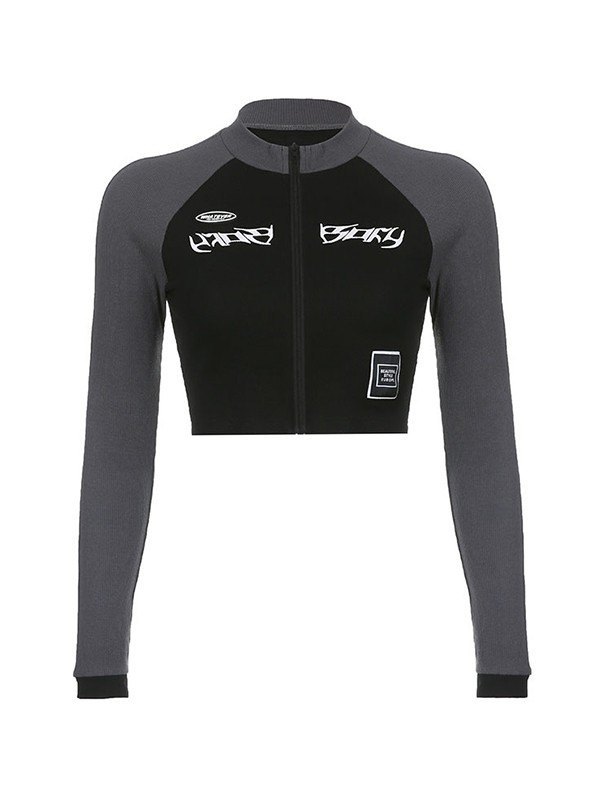 Description: This motorcycle-inspired crop top is a stylish and trendy addition to any wardrobe. The cotton and spandex fabric is comfortable and stretchy, giving it a slim-fit design that accentuates the body's curves. With the contrast panelStyle and logo detail at the front add a touch ofStyle and uniqueness to the top, and fastened with exposed zip fly to the front.