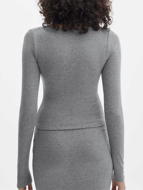Solid Breasted Long Sleeve Knit