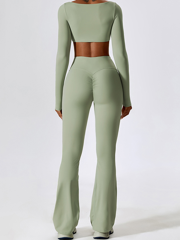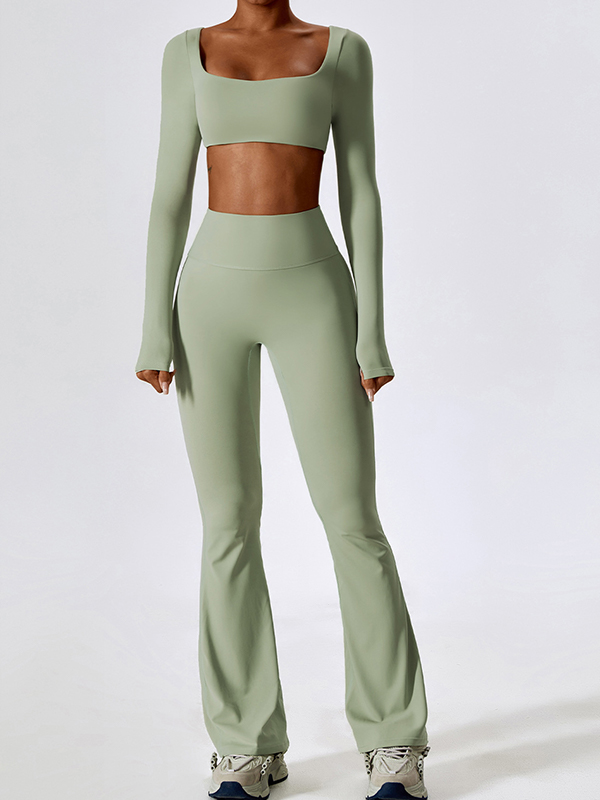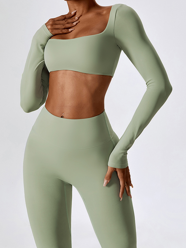Solid Quick Dry Square Neck Cropped Active Top&Pants Set