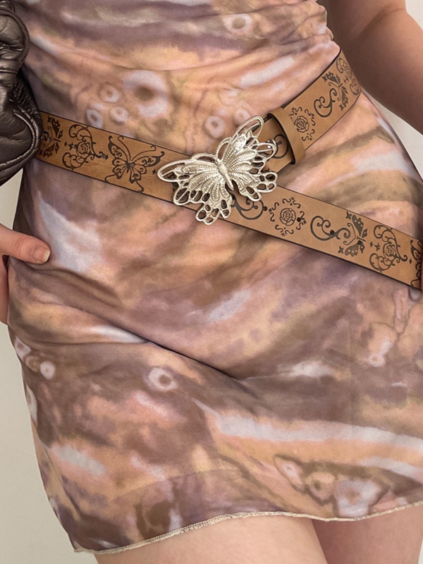 Vintage Embossed Metal Butterfly Buckle Belt