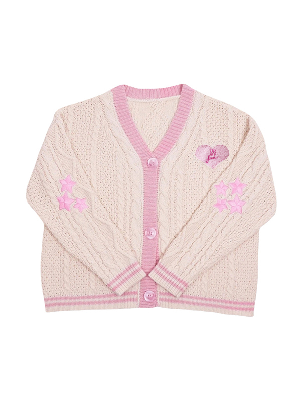 Star Embroidered Print Cable Knit V Neck Cardigan