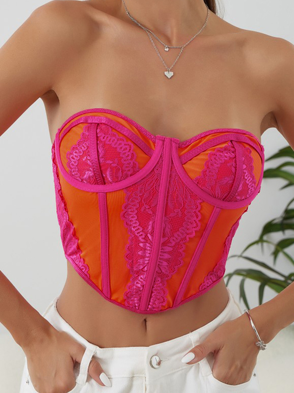 Mesh Splice Cutout Crossover Tie Up Corset Top