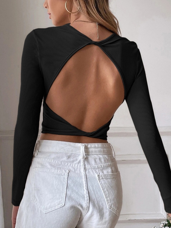 Solid Cutout Backless Twist Back Long Sleeve Knit