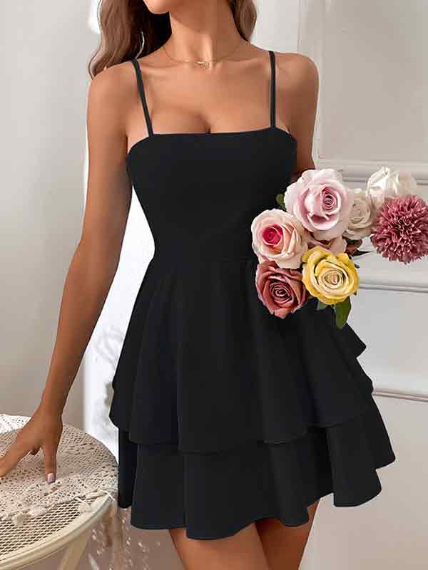 Solid V Neck Corset Pleated Sleeveless Mini Dress