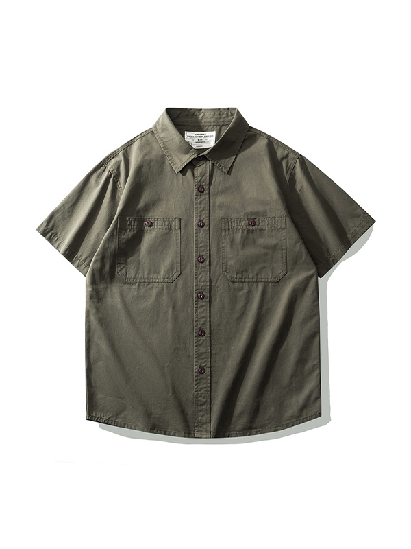 Solid Color Japanese Workwear Short Sleeve