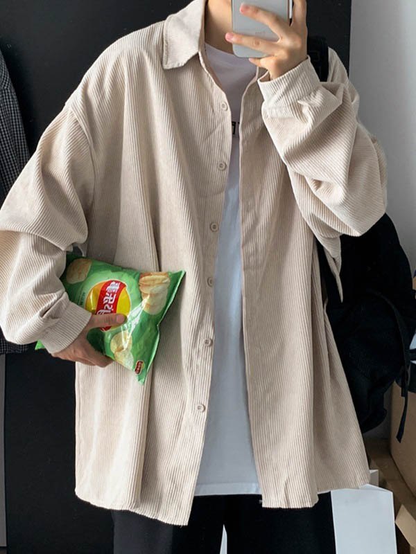 Men’s Vintage Corduroy Solid Long Sleeve Blouse