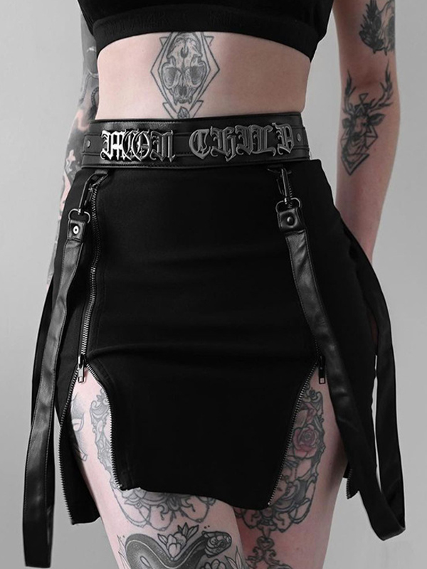 Gothic Double Zip Slit Buckle Decor Mini Skirt