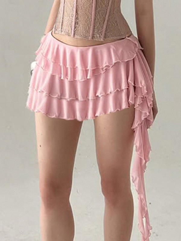Lace Splicing Ruffles Contrasting Colors Mini Skirts