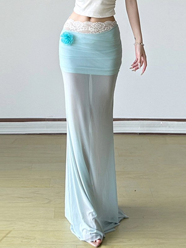 American Hottie Lace See-Through High Slit Maxi Skirts