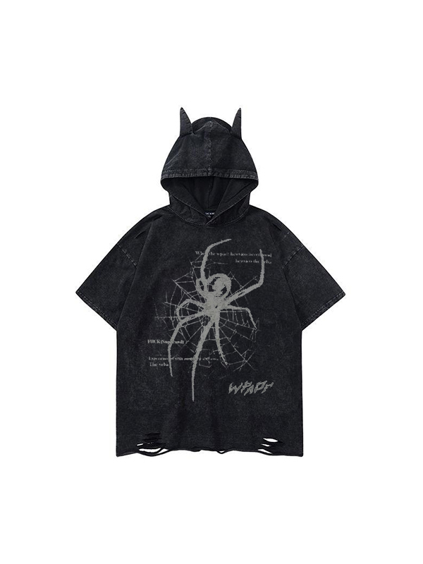 Little Devil Dark Style Spider Print Print Short Sleeves