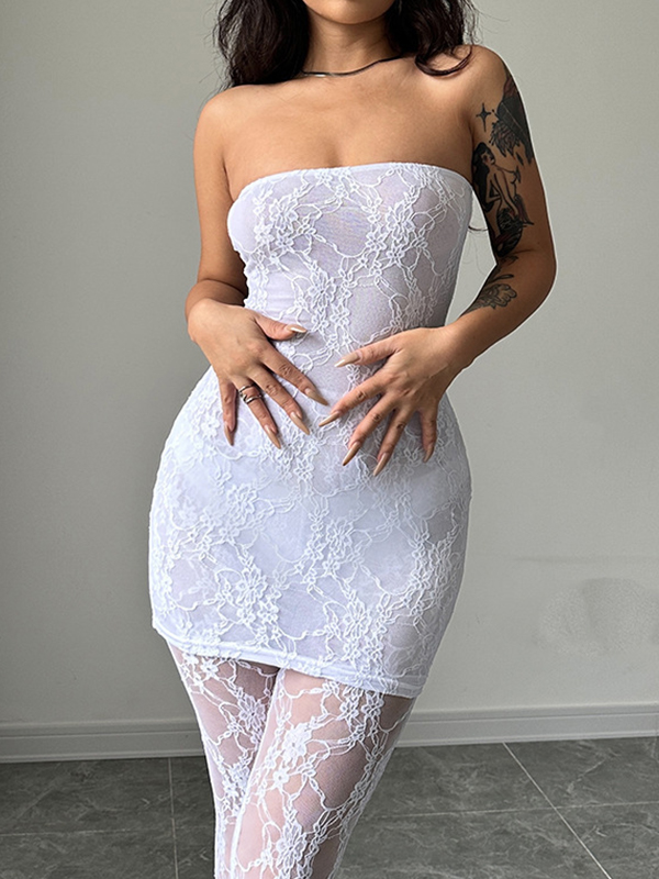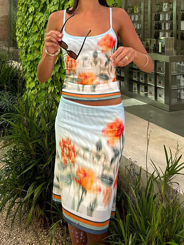 All Over Lace Print Short Sleeve Tee&Mini Skirt Set
