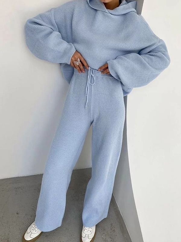 Solid Oversized Hoodie&Drawstring Wide Leg Pants Set
