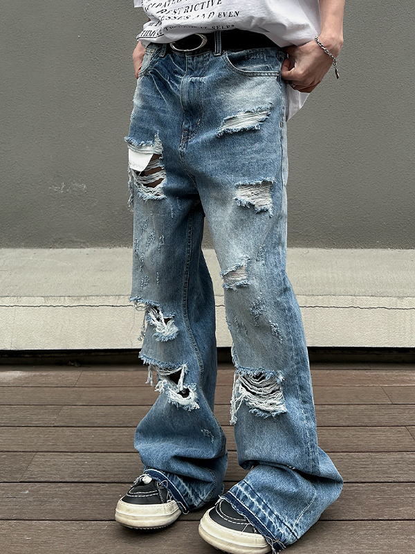 Men’s Solid Splice Bound Feet Wide Leg Pants
